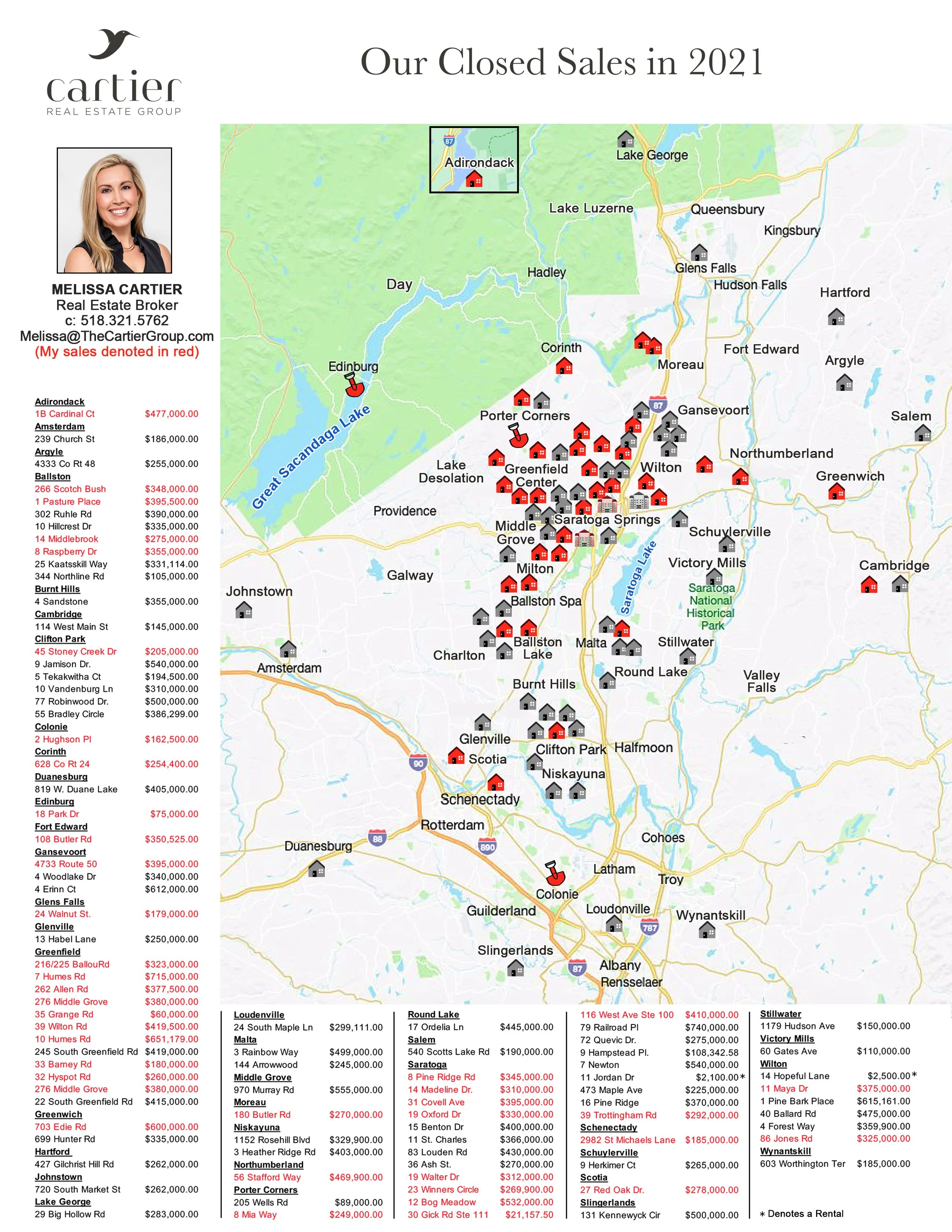 Giving Back: Real success is the ability to give back to our local community each year. We maintain memberships with the Saratoga County Chamber of Commerce, the Downtown Business Association, and supported several nonprofits again this year: Upstate NY Autism Alliance, The Dake Foundation for Children, Saratoga County Children’s Committee, Saratoga Regional YMCA, Community Work & Independence Inc., Kelly’s Angels, Lions Clubs of Greenfield/Saratoga, Catholic Charities, Greenfield Historical Society, plus our local schools, sports teams and fire departments’ community efforts. We made our fourth annual year-end donation to Shelters of Saratoga in recognition of each home we listed this year as well.